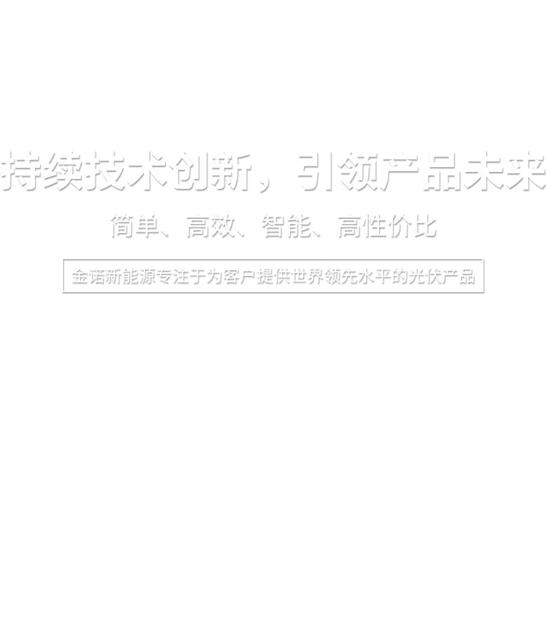 金諾新能源專注于為客戶提供世界領(lǐng)先水平的光伏產(chǎn)品,大力實(shí)施科技創(chuàng)新。我們秉持“品質(zhì)為先,服務(wù)全球”的理念,為客戶創(chuàng)造更高價(jià)值,并與您分享世界綠色能源在陽光下的成長喜悅!